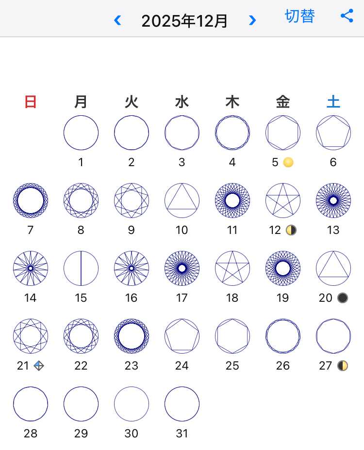 12月「太陽のエネルギーが降りそそぐ月。地球が太陽から守られているような月。地表面を突き抜けて、地球内部に命の光が吹き込まれる月」(数字のメソッド/辻麻里子)