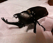 バドから帰ってボヘェェェ~と伸びていたらら、父がウォーキングから帰ってきて、ヒョイッとテーブルの上に何かを置きました。見るとそれは・・・カブトムシでしたぁ『歩いてて、くるぶし辺りがモゾモゾするな~と思ったら、コレがくっついてた』だって父はそのまま入浴へ・・・。全然元気が無かったし、テーブルの上じゃ滑ってかわいそうだったのでティッシュに水分をチョット含ませて乗せてあげました。動かない?!と思ったら、元気になったのか、羽をバタつかせて飛びました父しか触れないので、とりあえず空き缶箱の中に。ティッシュと遊んでるように見えて、チョット可愛かったでも、また飛んだんですかわいそうだけど、缶箱のフタを斜めにしました。だ~ってまた飛んだら恐いじゃ~んっそうこうしてたら父がお風呂から上がってきて、きゅうりを与えていました。でも虫カゴ・虫箱(?)もないし、土も木も直ぐにはなかったので、庭に放してあげたようです。その後どうなったかなぁ。