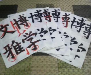 昨日はジムに行き、ヨガのレッスンに入りましたよ(*^^*) ガッツリなヨガで、イタ気持ち良かった( ̄∀ ̄*) トレーナーくんが担当してたレッスンだったので、ちょっと寂しかった(>_<) 今日は朝からお盆の打ち合わせに従妹親子がやってきて、 午後から書道のお稽古に行きました。 結構な枚数書きましたが、良かったのは2枚だけ~(*_*) 難しいけど、集中してやれます!