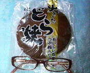 画像は「大きなどら焼」です!比較の為にマイ眼鏡と並べてみました(笑)