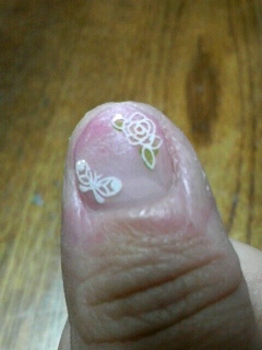 今回は長さは出さずに、チョー短い自爪で先をピンクのグラデーションに。