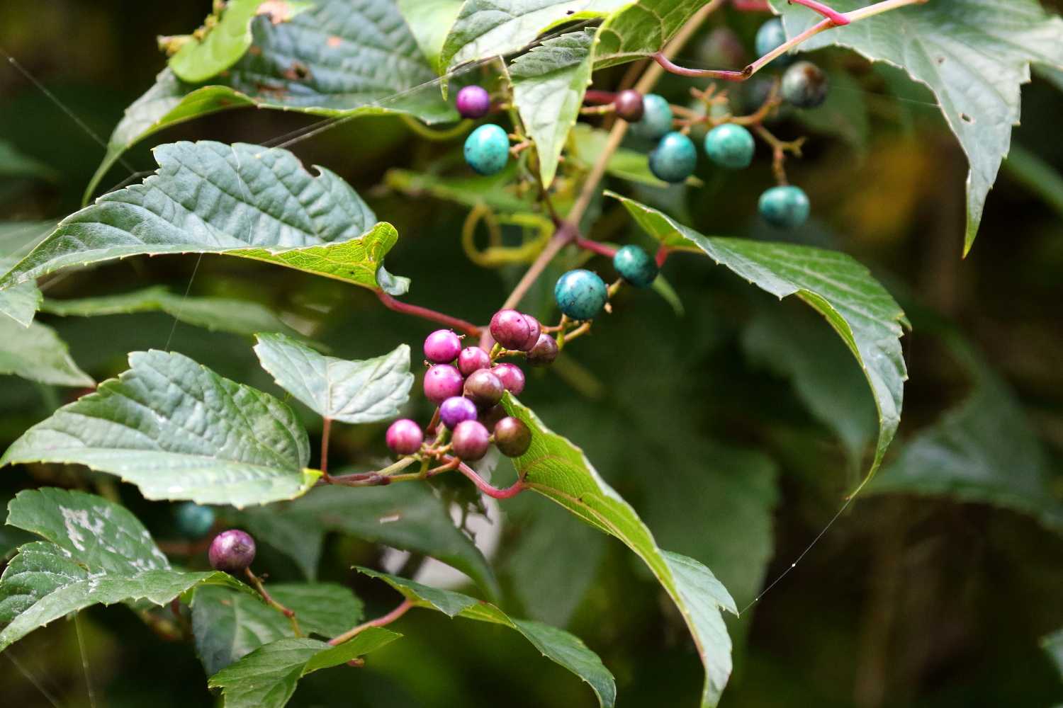 (本日更新1)和泉葛城山の頂上付近で「ノブドウ」が、綺麗に色づいていました(^-^)このノブドウの色は、白緑色・薄紫・瑠璃色・紫・赤紫等々とても綺麗ですが、これはブドウタマバエなどの幼虫が実の中に入ることで色が変わるんだそうです。実をつまんでみると水色や青色は柔らかくて中には種が入っているのに、赤や赤紫色の実は硬くて虫が巣くった後があって種の実り具合が悪いのだとか・・。※Canon EOS 7D MarkⅡ+100-400mm F4.5-5.6L ISⅡ+1.4x 手持ち撮影(ふうさん)☆和泉葛城山の頂上付近でで綺麗に色づいていた「ノブドウ」 【ノブドウ(野葡萄):ブドウ科ノブドウ属のつる性落葉低木】ノブドウ(1)044A9257 by ふうさんノブドウ(2)044A9256 by ふうさん