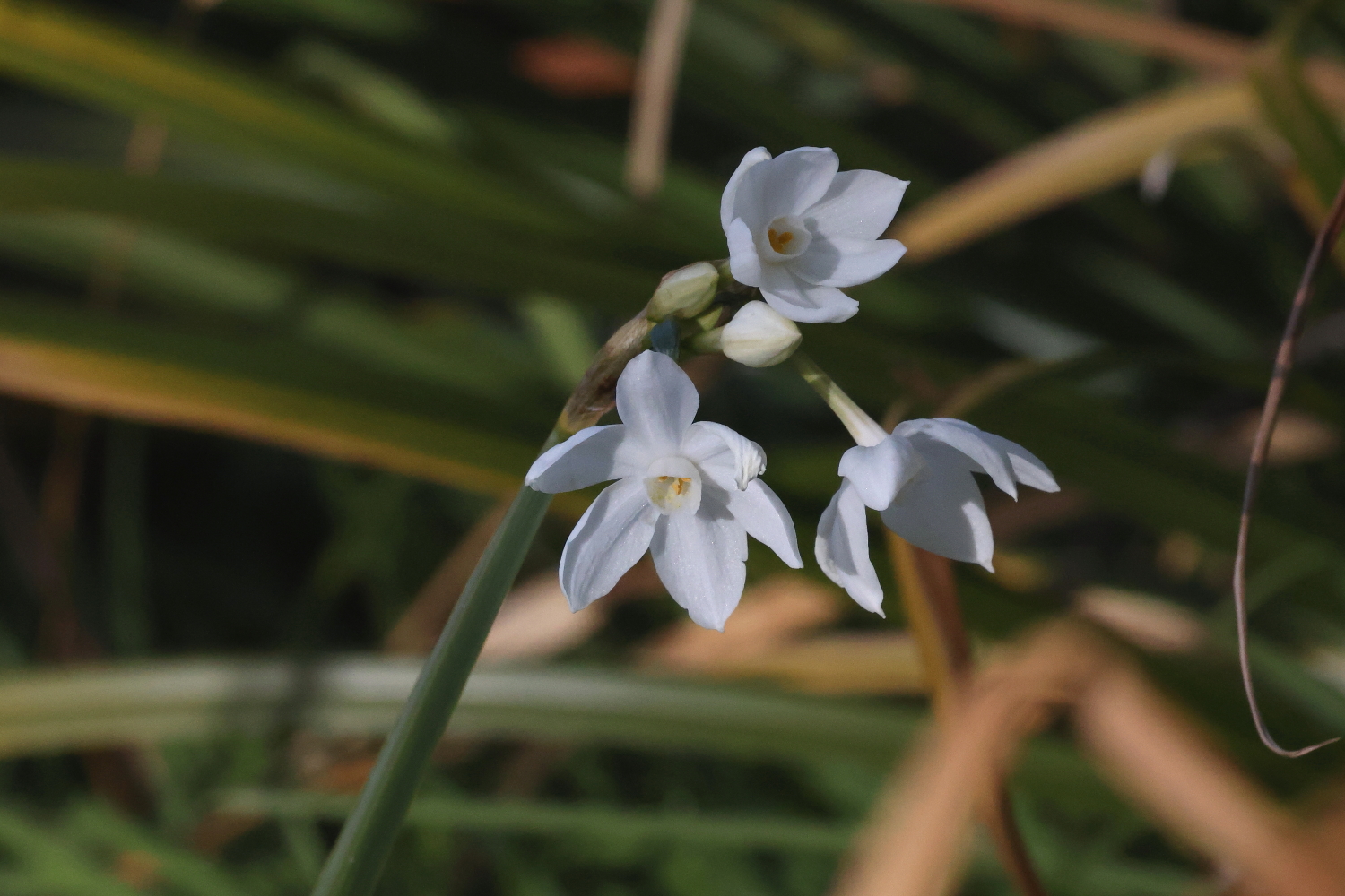 花期は12~3月で、ニホンスイセン」の花言葉は「自己愛」「うぬぼれ」で、「ペーパーホワイト」の花言葉は「神秘」「尊重」のようです^^