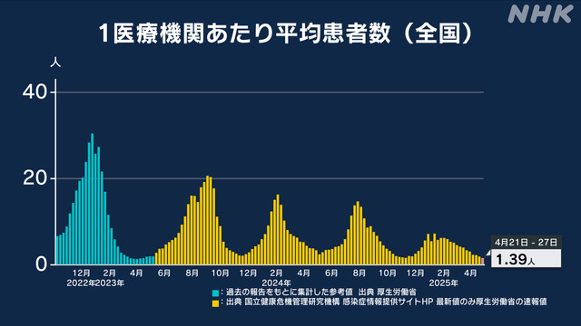 地元大阪府で、先週1週間(4月21日〜4月27日)に報告された新型コロナウイルスの定点医療機関あたりの患者数は、低水準で更に低下傾向が継続しています。