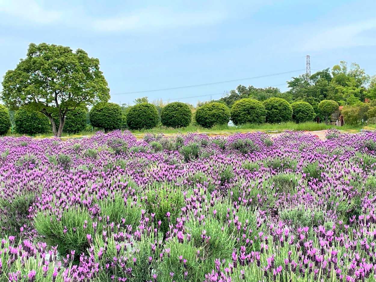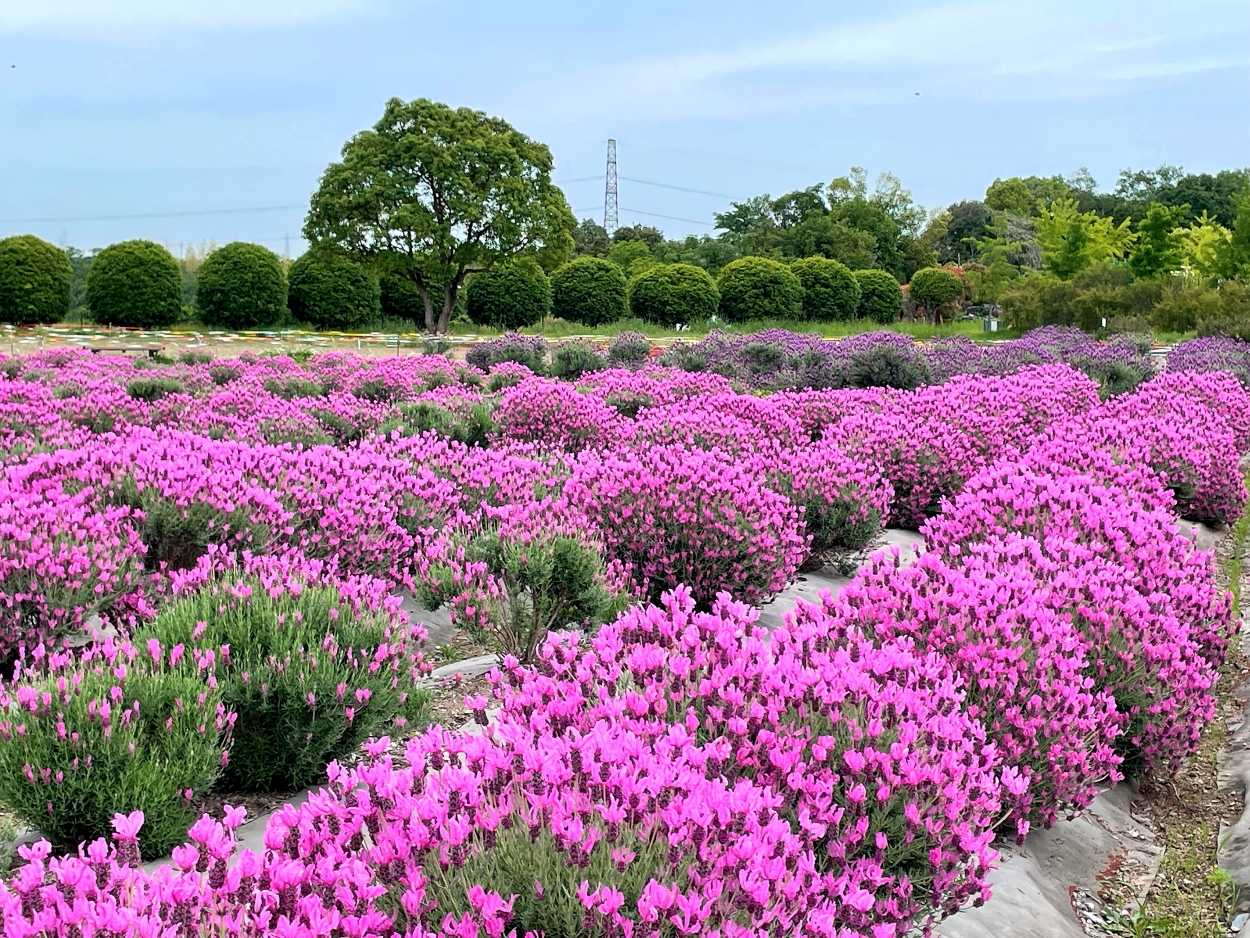 (本日更新1)リサイクル環境公園で、うさぎの耳のような形をしたピンク色の他に、薄い紫色の苞葉が特徴的な、「ストエカス系のラベンダー」が、一面を綺麗に覆い尽くして咲き誇っています(^-^)