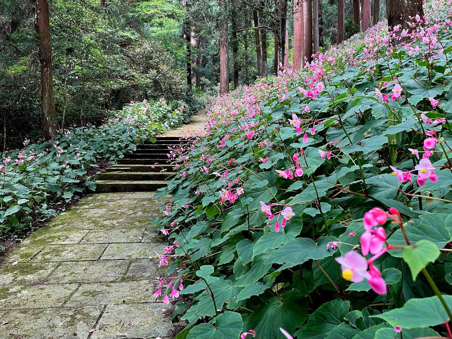 岩湧寺への山道も、シュウカイドウが満開に咲き誇って花に埋め尽くされて、とても綺麗に秋の気配が感じられました。