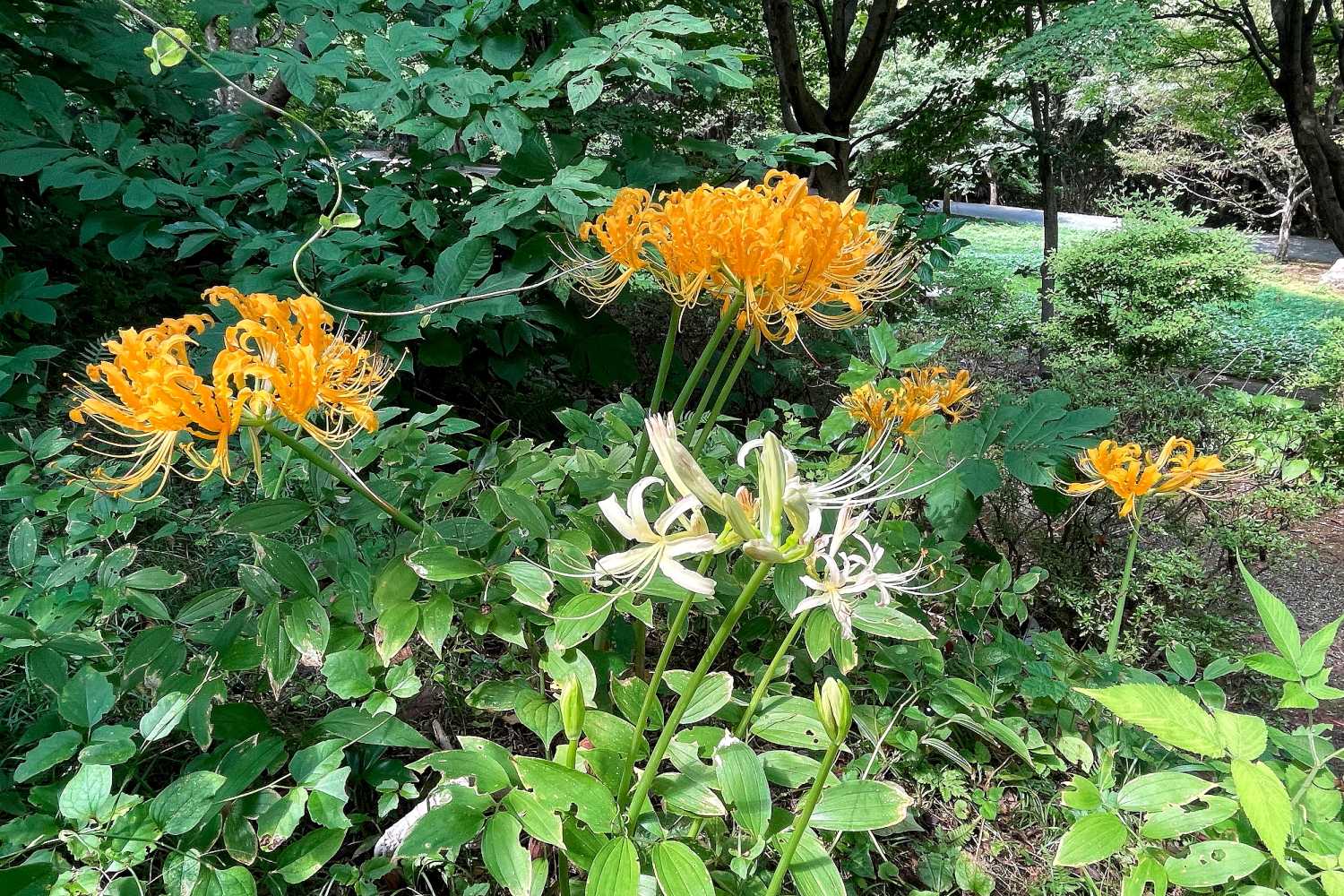 ☆岩湧の森の一画で綺麗に咲き誇っていた黄色と白色の彼岸花「ショウキズイセン」
