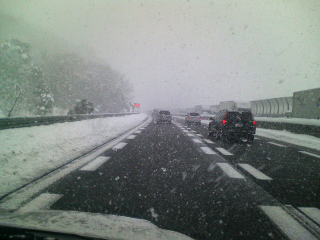 お早う御座います~~~♪今朝はスッキリ晴れていますが寒いです!お月様が綺麗に見えます(∩.∩)皆様の所は、雪大丈夫でしたか??スリップ事故などが多いようです!お出かけの際は、足下十分に注意して下さいね!今日は、西の日(ウエスト・デー)ですよ!2月4日の語呂合わせから生まれた日で、この日には西方へ行くと幸運に巡りあえるという。また、西から来た人と仲良くなれるなど、西にこだわった日です。西山さん、西田さん、西澤さんなど、苗字に西のつく人のための日となるかも知れませんね。σ(・_・)今日、お仕事で西に行きます!しかも、一緒に行く同僚・・西が名字につきます!良い事有ると良いです(^^)V!!昨日の雪、朝起きてびっくりしましたね!私は、先日紹介させて頂きました、新名神を見に行ってきましたヘ(^o^)ノ*吹雪の高速道路は、こんな感じで融雪剤の効果で積雪はありませんでしたが、視界が悪い状況でした。そして、高速道路を降りた一般道にも少し雪がありました。そして見えてきました!新名神です!!ぽちっ雪景色の中!!美しい橋ですね!新名神、今月の23日に開通します!この状況では雪対策には成りませんが、渋滞解消など便利になりますね!開通が楽しみです(^^)V週の始まり、月曜日ですね!風邪ひいちゃった人!!頑張って風邪治して(o^-')b今日も良い事探ししましょう!!(^^)!良い一日になります様にd(^-^)ネ!p(^^)q