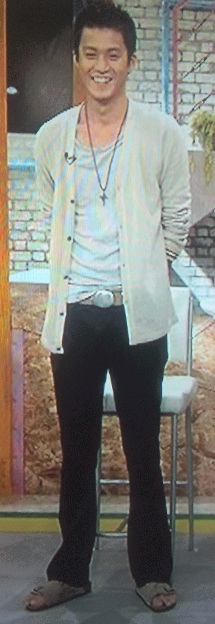 これです。 画像悪くすみません。実際グレーなのかな?グレーベージュ?とにかく 丈長めのカーディガン、…が、あまり私 好きでなくて……つーか、『脱いで!』ほしい!(笑) Tシャツか何シャツか知らんけどそれ1枚でいいじゃん!カーディガンは いいから、脱いでおしまい!!!(笑) まだまだ 暑いのに秋先取りみたいなスタイリングいりまへん!★お買得!送料込み!2450円【小栗旬(TAJOMARU)】2010年カレンダーま、何を着ててもがっつり関西のスタジオ出てくれて嬉しかったなあ~o(^-^)o