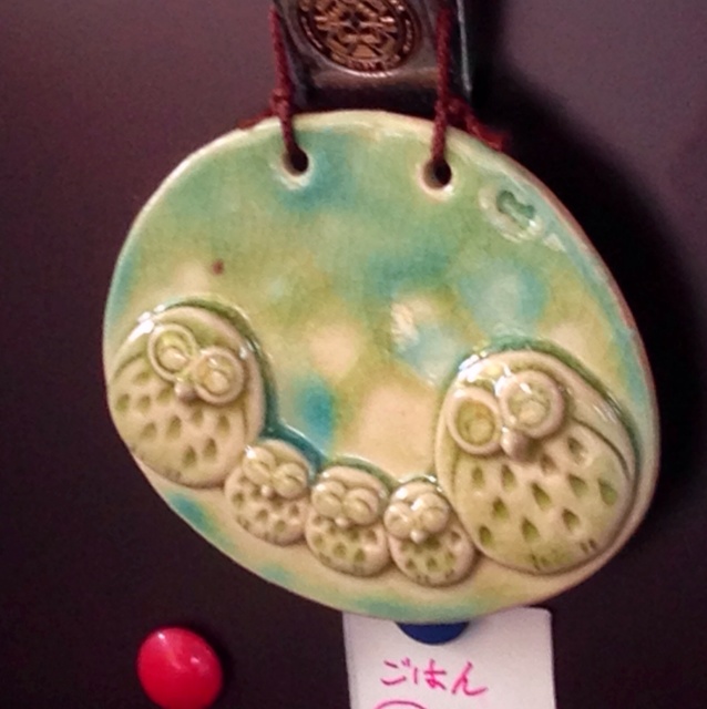 姑はフクロウが好き。 フクロウグッズが実家のあちこちに 飾られています。 私もフクロウ好きですけどね。 で、先日あるところで 可愛い陶器の壁飾りを見つけ、 自宅用にひとつ、 姑へとひとつ買ってブレゼントしたのですが(ー ー;) 冷蔵庫の側面に かけられてました(ーー;) 飾るとこ、いっぱいあるのに。 なんでも 舅が壁に釘を打ちたくない との理由から、と 主人と姑は言いますが、 リビングの壁には 七福神巡りのご朱印や 伯父が趣味で描いた絵が 壁に飾られています。 伯父の絵は いただいだものだから 掛けないわけにいかないから、 だって。 私からのは いただいたもの除外? 白い壁に掛けたら映えるのに。 こんなとこですよ。 私が作った駄作なら、 ここでもいいけど、 陶芸家さんの作品で 5000円近くしたんですが、 炊飯器のそばですよ(ーー;) まあ、いいんですけどね。 亡くなった娘さん入れたら 主人は三人きょうだい。 だから、 このデザインを選んだんですが。 もっと安い夫婦フクロウか 独りフクロウにすればよかった。 というか、 もう、思いつきのプレゼントは やめようっと。(ー ー;)