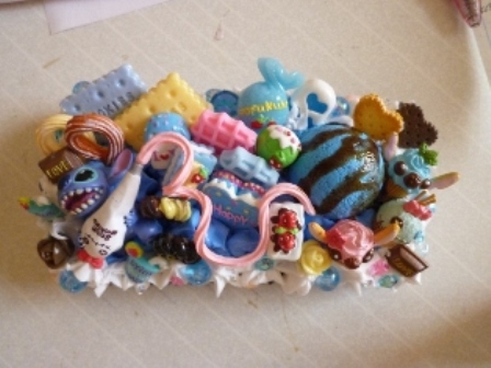 お客様に頼まれてたデコをご紹介ご注文は ブルー系スティッチデココレ、一応 ファンデーションケース です…デコ盛り注文 だったので、これでもか って言うくらい乗せてます シリコンが余ったので、他にもデコチョコ型コームにデコ チョコ型ミラーにデコスィーツデコ癒されるぅ~