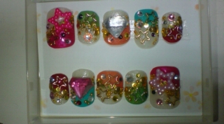 発注のあった オーダーネイルチップ完成 カラフルスター 希望のお客様 価格3014円 ブラウン系+3D 4枚葉のお客様 価格3517円 ネイルチップはお客様のすべての指一本一本サイズを測って作ってます