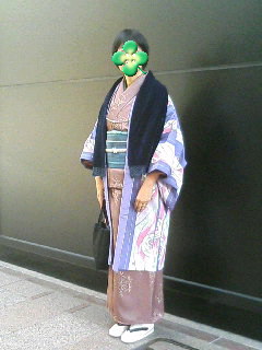 たまねぎさんのお誘いで、ママンから招待券をいただいていた銀座の松屋に池田重子展を観にいってきました。色々と琴線にふれる展示もあって良かったです。他のフロアで、行われていた羽織裏の展示も凄くよい感じでした。やっぱり羽裏、あの闘鶏のにすれば良かったかなあ~なんて思ったりもしました。(金銭的には、ちょっと痛いので諦めたのですよねぇ。)本日のコーデは、きくやさんで落札したシルックの小豆小紋です。お仕立てしてもらって、自分サイズのものなのでポリとはいえ、身に沿っていて着やすいです。袋帯もきくやさんのリバーシブル帯の青色の方を出しています。帯締めは昨日届いたばかりの道明、帯揚げは青色、羽織は、たんす屋さんのオリジナルもので、とても安かったので前に購入しておいたものに木楽会で購入した羽織紐(パープル選んだので色が凄くあってました。)それに、義母の形見のベルベットのショールを羽織っています。 ランチも、とても美味しい店にたどりつき(なぜか箸が二本もついてきたかも)風月堂で和菓子など食べてと、楽しい着物でお出かけとなりました。