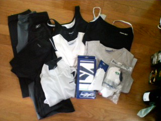 あけましておめでとうございます。今年もよろしくお願い致します。元旦の朝は、お雑煮からはじまる。そして定例のアウトレットの福袋争奪戦に突入です。 元旦からお金使って・・なんですけどね。 さあて、全部1品1万500円という値段でしたが・・どんなだったかといいますと。今年の大当たりは、このリーボックのフィトネス福袋でした。トップス5枚、レングス4枚にタオル1枚ソックス2品の12品でございます。どうしても使えそうもなかったのは1品だけ、ミニ丈のレングスでしたが、これは娘がバイトの時の下履きにするという事でひきとってくれました。 旦那ちゃんと息子用アディダスの福缶も購入致しました。これはTシャツ2枚に、揃いの上下(下2枚)普段履けそうなパンツ1枚に缶という感じでした。上下は三本線の部分が偏光になっていて緑、黄、青と光や見る向きで変わってみえるものです。旦那ちゃんは紺でよかったが、息子のは白だったので不満のご様子ですした。毎年ほとんど買っているんですが前はもっと凄かったような気がしますね・・時計とか入ってた年もあったので、無難な分、おもしろみに欠けてたかな。そしてカワイイ甥用のミキハウス福袋・・こういう時じゃないとミキハウスの店にも近づけないので、とても嬉しくなりますね。上二枚、下二枚ですが、くまちゃんがとてもキュートす。定価だとパンツ1枚が万円近いからなぁ。^^;;;今年は9時過ぎに並んだのですが、ちょっと遅かったのか友達に頼まれたモンベルは、店に入れた時には既にLサイズ以上は売り切れてしまってて、敗北しちゃいました。人気の店は、整理券を配布するので、並んだらそれを開店の時にゲットし、引き替え時間までに効率よくまわったり、人出を用意するのが勝因となりますね。今回は、旦那ちゃんと二人で、アディダスは旦那ちゃんが並び、他は私が購入して、最後に缶はかさばるので、取りにいって帰りました。