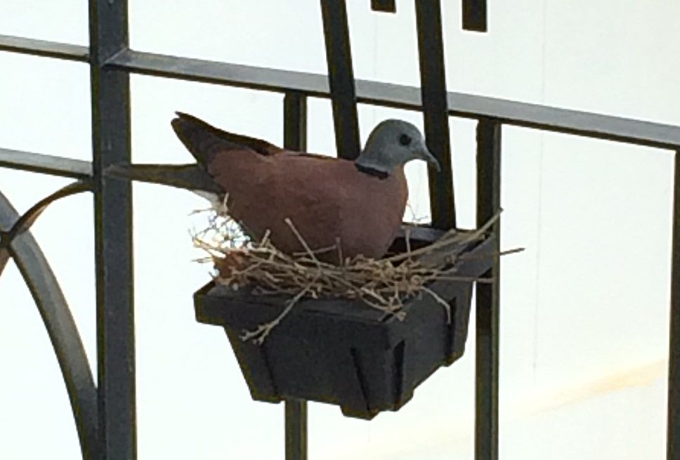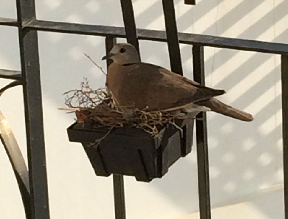 土曜辺りから、またまたハトがやって来て、枝を運び始めたので「巣を作る気か?」と観察していました。