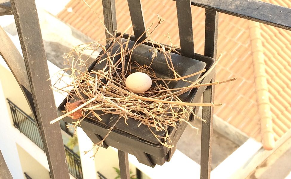 今朝見たら、卵がひとつ置かれていて、親は不在でした。