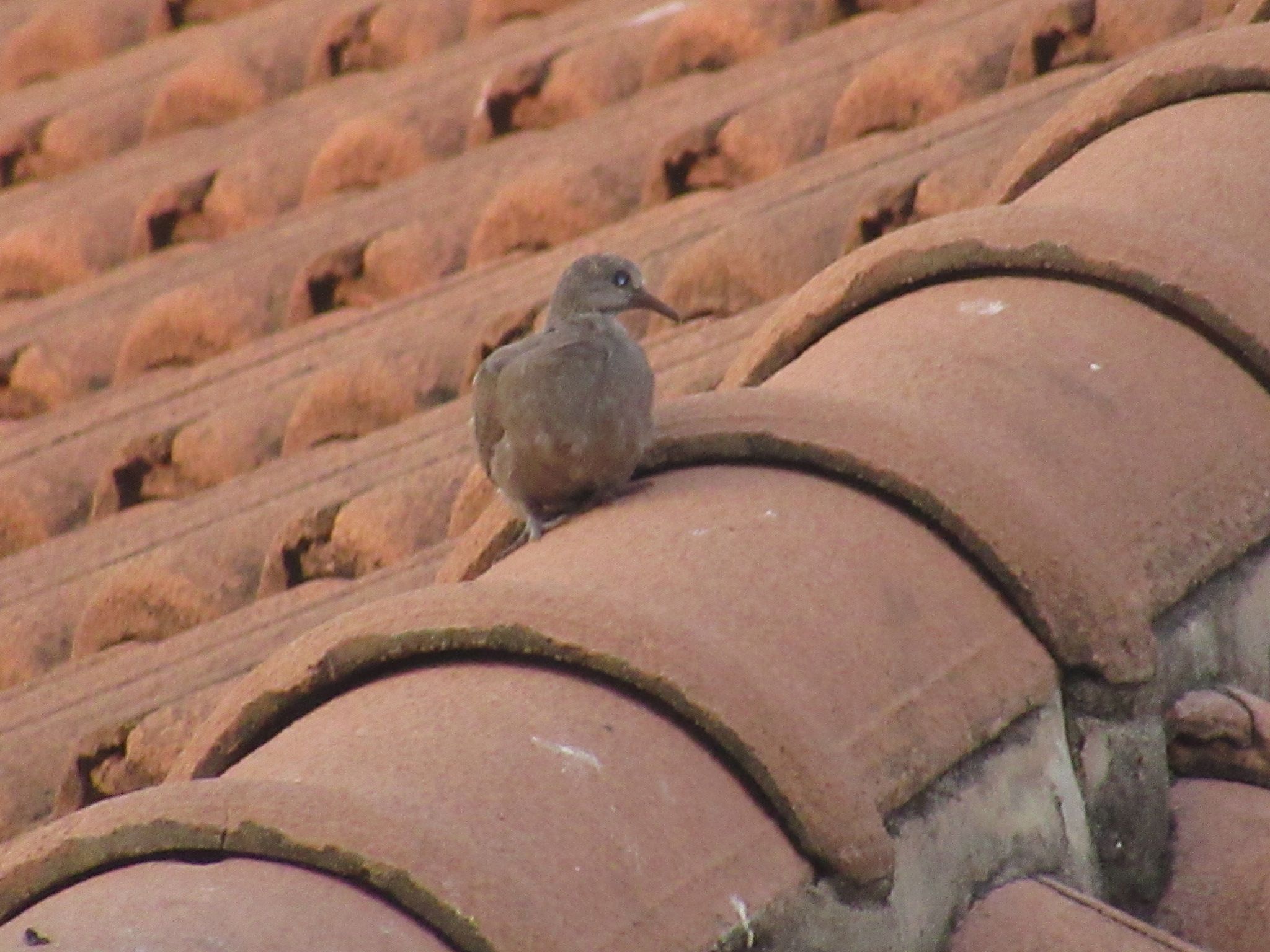 隣の屋根にいるのが、うちの小鳥かも知れない。