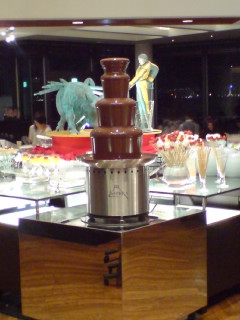 家族でお食事に行ってきました。場所は桜木町のインターコンチネンタルホテル。今回はスペイン料理でメインはイベリコ豚。美味しかったんだけど、ちょっと油ぎっしゅでと中断念したw。何より感動したのは夢にまでみたチョコレートファウンテン☆目の前にした瞬間メインの食事よりも、一番最初にマシマロをあのふぁうんてんへ~どぁ~っと!!!とさえ思った。が、さすがの私もお楽しみは後でとぐっとこらえた。あぁ~写真みるだけでもなんて魅力的な噴水具合でしょう。。。はぁ。