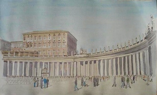 バチカン。正面建物の最上階、右角の部屋がローマ法王の部屋。