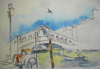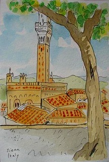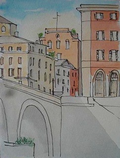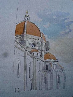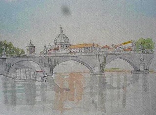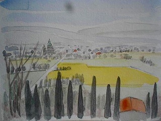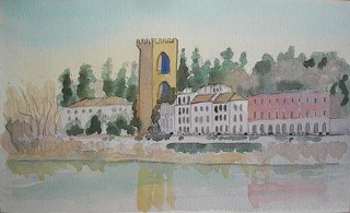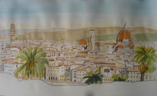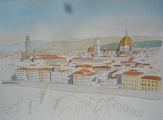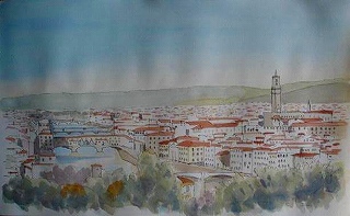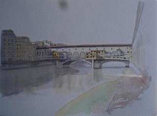 ミケランジェロ広場から。昨日の場所から左の方を描いたもの。ベッキオ橋が見える。