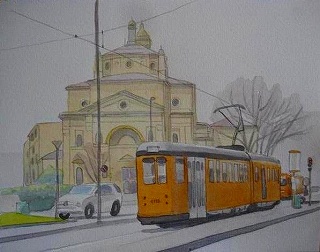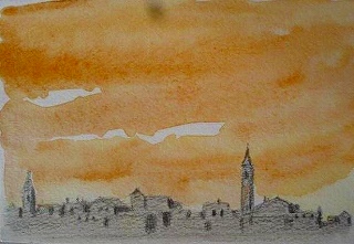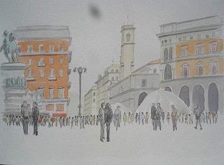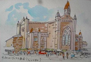 ミラノ・ドゥオモ前。これは現場で描いたもの。寒くて手がかじかみ、霧と夕闇で視界が悪くなってきたのを思い出す。3/1~7まで貼付案内の通り展覧会を開催します。イタリアツアーにご一緒した方、ぜひお立ち寄りください。(住所が分らないのでこの案内状を送ることができません)