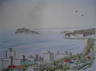 披露山公園にて。昨日、逗子の披露山公園に行ってきた。暖かくて風もなく、絶好のスケッチ日和でした。
