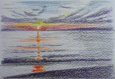 直江津にて。昨日と同じ風景を色鉛筆で描いてみた。やっぱりダメですね。