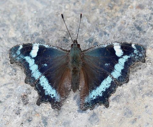 石川不二子(いしかわ・ふじこ)るりたては瑠璃の紋ある翅ひらくくもりあまねき天より降くだり歌集「野の繭」 パブリック・ドメイン ルリタテハ画像