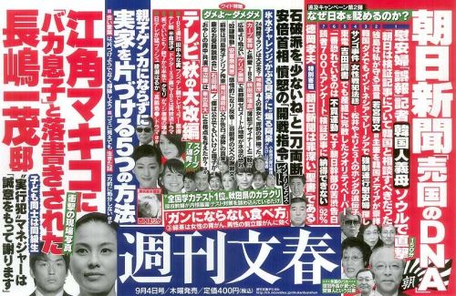 ■ 広がる朝日包囲網 読売、毎日も批判週刊文春、週刊新潮は広告掲載拒否に抗議【産経zakzak 28日】