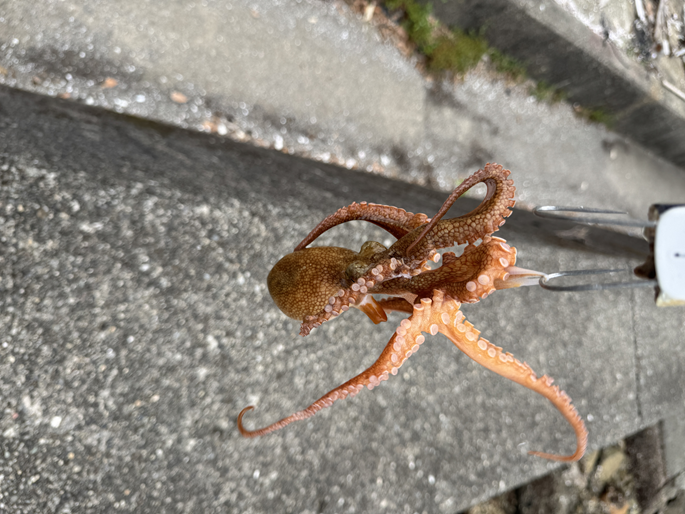 18:00-21:00 中部漁港友人と今年3発目のタコ釣り時期的には少し早いかもしれませんが、調査したくてでポイントに着いてテンヤを投げるとチビヒット×2チビを避けるためにテンヤで釣ってましたけど、乗る時は乗りますなぁオフシーズンにタコの飼育動画見ていた為、若干罪悪感があるデカいヤツはシンプルにキモいけど、小さいヤツはかわいいっすねただ、時期的には少し早いかも。海を見て回りましたが、タコが餌食べてる形跡が少なかったあと水草が多いんで釣り辛いですね