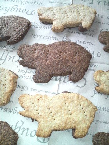 いろいろとちょっとずつ胚芽量増やして作ってみたんだけど~~黒いのが胚芽と薄力粉1対1のビスケット~!ちょっとこれはやりすぎたかな。。。でも~胚芽ゼロのよりはめぐるんぱはこっちのほうがまだ好きかも~♪ってかんじ~!胚芽はすぐ酸化臭が気になって捨てちゃうことが多かったけど~これからはパンに買うだけじゃなく~ビスケット作るのにもばんばん買っちゃうかも~!!!(゚▽゚)(。_。)(゚▽゚)(。_。)ウンウン