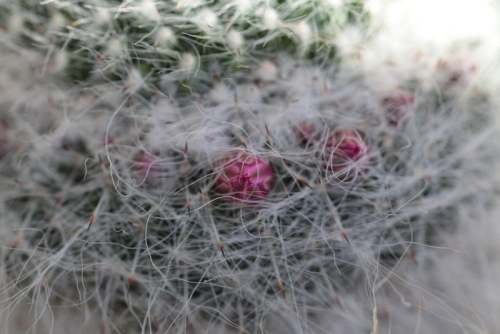 我が家で一番大きなサボテンも、糸のような綿毛の中に小さな蕾が 見えてきました。2、3日すると開花する事でしょう。 多肉植物も蕾のようなものが見えます。小さなサボテンは元気に花 を開いています。夜になると花弁は閉じます。