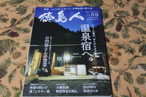 先日、タウン誌徳島人の2月号が届きました。 すえドンさんの緻密な鉛筆画をはじめ、四国の温泉宿の特集です。 こんな所があるのだと、改めて確認しました。 食と温泉楽しんで読みたいと思いました。