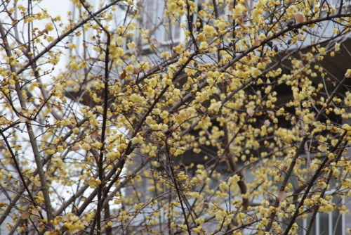 家のすぐ近くに、蝋梅の花が見事に咲いていました。今年初めて気 が付きました。柔らかく甘い香りがしています。毎年花を咲かせて いたのに、気が付かなくて残念です。ブログを始めて2年、色んな 事に注意深くなったと思います。