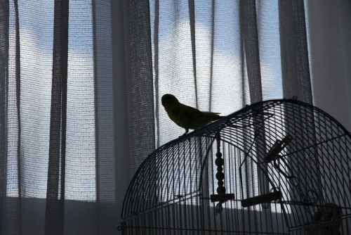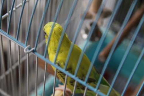 最近のメイです。籠から出たり入ったりして遊んでいます。 身体も、しっかりしてきた感じはしますが、まだあまり飛べません。 メイは、ペットショップで羽根を切られていましたので、きちんと生える までは、あまり飛べないのだと思います。飛ぶ能力を人の手で摘み取るのは 少々可愛そうだとおもいます。以前のメグは、ウブ毛の時から私が育てたので 元気いっぱい飛びまわっていましたが・・・