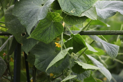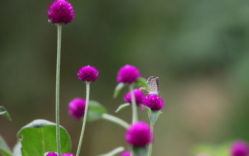 畑では、きゅうりが大きく育っています。そして、ピンクや紅の 小花も綺麗に咲いています。(名前は解かりません) 千日香には、小さな蝶が止まり、ピンクのコスモスも咲き出しました。 夏から実のりの秋への変化の時です。