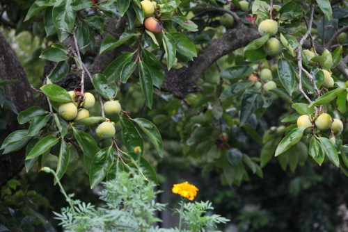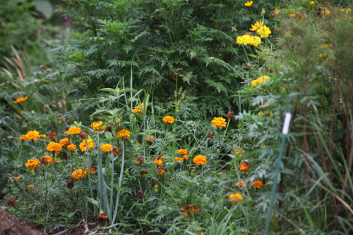 雨が降り出しそうなお天気でしたが、この間から小父さんの畑が 気になっていたので、見に行って来ました。 畑の隅にある柿の木は、今年は豊作で沢山の実を付けています。 マリーゴールドは枯れた花もありますが、次々と花を咲かせています。 キ花コスモスは、絡み合いながらも元気です。グラジオラスは、すっかり 枯れてしまいました。