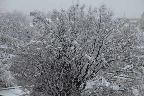 昨日から冷え込んでいると思っていたら、夜中から大雪です。 起きると一面銀世界になっていました。 工事中の建物に吹き付けられた雪が、バサバサと音を立てて落ちて います。交通機関は大幅に乱れ、道路では車がスリップして横転したり 転んでけがをする人が続出しています。雪に弱い都です。