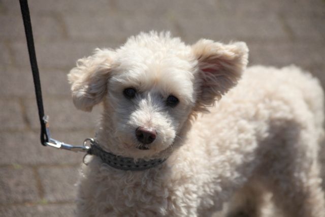 散歩の途中、白いプードルを連れた小父さんに会いました。