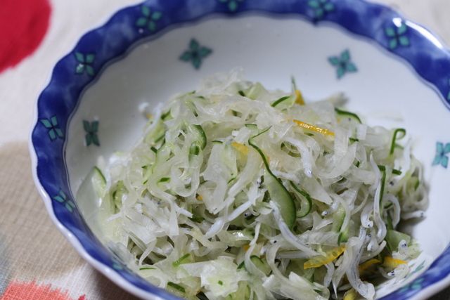 します。シラスと柚子をいれて酢の物を作りました。