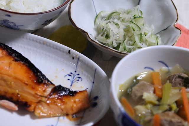 煮ました。鮭の粕漬と一緒に・・・まだしばらくは、細かくきったものか、やわらかい