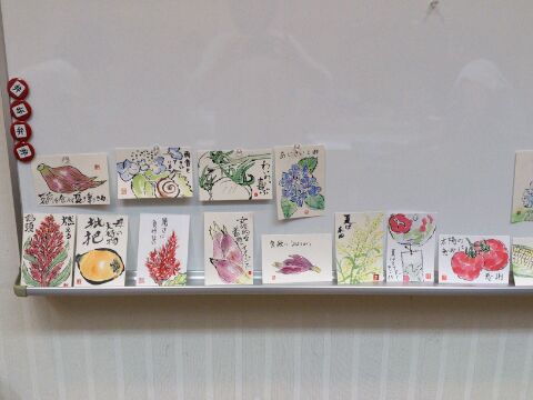 土曜は、弁天町市民学習センターの絵てがみ教室でした。 あじさいや夏野菜、夏果物、風鈴、ケイトウ… どれを見ても、夏のイキイキさが目に飛び込んで来ますね。 今日は、梅雨の中休み。 せっかくのいいお天気、どちらにお出掛けでしたか?