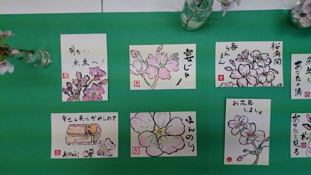 水曜日は、ウィルサロンの絵てがみ教室でした。春は桜今、大阪では桜が満開で、見頃を迎えています。ウィルサロンの絵てがみ教室でも、全員で桜を描きました。淡いピンク色の花びらを塗るのに、グラデーションの手法をお教えしました。花びら1枚1枚に、まず筆で水をつけてから、乾かないうちに紅梅色を薄く筆先にとって花びらの先のほうにトンと置くように塗ります。薄い紅梅色がグラデーションとなって、淡いピンクの花びらができあがります。うっすらとしたピンク色が、桜の微妙な色合いを出して素敵です。絵てがみでお花見ですね! 【絵てがみ教室のお知らせ】※どの教室に来られてもOKです。※どの教室も時間は、10:00~11:30(*時間変更の場合もあります)※参加費、1,000円/1回毎※道具レンタル、500円/回(筆、顔彩、パレット)要予約※いつでも、お試し体験(1,000円)できます。【各教室の日程】ウィルサロン(月or水or金)……4/1(水)、20(月)、5/11(月)、20(水)楽しみカルチャースクール(第3火)……4/21、5/19あべの学習センター(第2,4火)……4/14、28、5/12、26弁天町学習センター(第2,4水)……4/8、22、5/13、27弁天町学習センター(不定期 土)……4/11、25、5/16、30