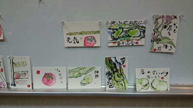 火曜日は、阿倍野市民学習センターの絵てがみ教室でした。旬の野菜、筍を持って来ました。とても小さな筍なんですが、みなさん、ハガキいっぱいに大きく描いてくれました!はみ出して描くと、見た人が大きさをイメージできるので、より大きく見えてきますね。はみ出して描く、といえば、iさんが、カラーの花をハガキ2枚で描きました。カラーの特徴である長さを生かすために、縦2枚です。ポストに投函するときは、上側の花の部分ではなく、下側の葉っぱと茎の絵てがみを先に出してくださいね。相手に届いて、「これ、何かな~?」と。そして後日に、カラーの花の絵てがみが届いて、「あっ!」と。今からそれを思うと、楽しいですね。\(^o^)/ 【絵てがみ教室のお知らせ】※どの教室に来られてもOKです。※どの教室も時間は、10:00~11:30(*時間変更の場合もあります)※参加費、1,000円/1回毎※道具レンタル、500円/回(筆、顔彩、パレット)要予約※いつでも、お試し体験(1,000円)できます。【各教室の日程】ウィルサロン(月or水or金)……5/11(月)、20(水)楽しみカルチャースクール(第3火)……5/19、6/16あべの学習センター(第2,4火)……5/12、26、6/9、13弁天町学習センター(第2,4水)……5/13、27、6/10、24弁天町学習センター(不定期 土)……5/16、30、6/13、27