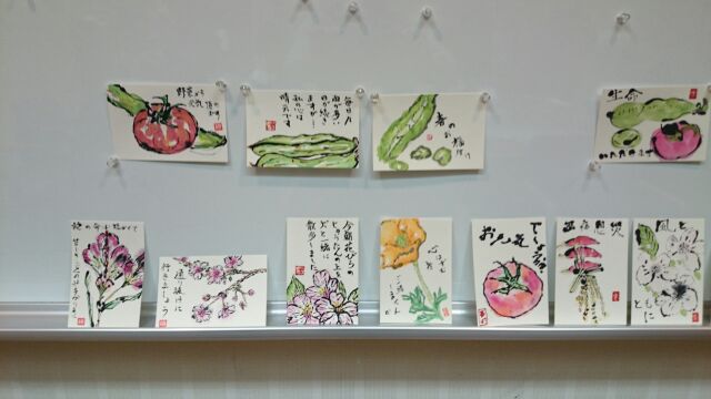 土曜日は、弁天町学習センターの絵てがみ教室でした。春になって、何か新しく始めようかなぁ~ っと思ってる方々が多いのでしょうか?絵てがみ体験にお問い合わせの連絡が、多くなってきました。嬉しいことです。今回も、初めての体験参加の方です。トマトのヘタが気になります!と、トマトのヘタ部分から描きました。言葉は、「ヘタで ごめん」思い溢れる絵てがみが出来上がりましたよ。 【絵てがみ教室のお知らせ】※どの教室に来られてもOKです。※どの教室も時間は、10:00~11:30(*時間変更の場合もあります)※参加費、1,000円/1回毎※道具レンタル、500円/回(筆、顔彩、パレット)要予約※いつでも、お試し体験(1,000円)できます。【各教室の日程】ウィルサロン(月or水or金)……5/11(月)、20(水)楽しみカルチャースクール(第3火)……5/19、6/16あべの学習センター(第2,4火)……5/12、26、6/9、13弁天町学習センター(第2,4水)……5/13、27、6/10、24弁天町学習センター(不定期 土)……5/16、30、6/13、27