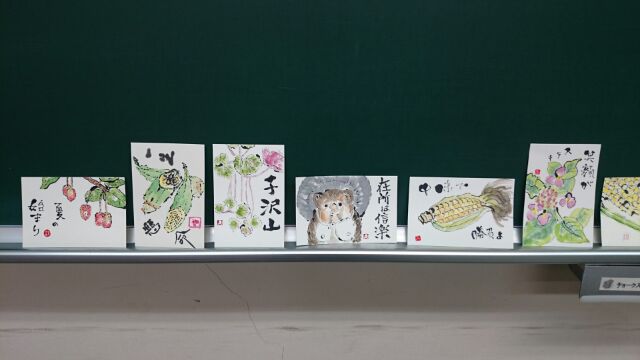 水曜日は、弁天町学習センターの絵てがみ教室でした。前日の台風がどれほど影響されるかと思いましたが、全く関係ない! カラリと晴れて、いいお天気。しかも、夏日になるほどの暑さ。でも、いつものメンバーが皆さん、来てくださいました。お元気で、パワフルです!前回の土曜日クラスに体験で来られた方が、今回水曜日クラスに来てくださいましたが、実は、水曜日クラスのOさんとお知り合いだったのです。お互い、教室で会ってビックリされてました。これも、何かのご縁なんでしょうね。 【絵てがみ教室のお知らせ】※どの教室に来られてもOKです。※どの教室も時間は、10:00~11:30(*時間変更の場合もあります)※参加費、1,000円/1回毎※道具レンタル、500円/回(筆、顔彩、パレット)要予約※いつでも、お試し体験(1,000円)できます。【各教室の日程】ウィルサロン(月or水or金)……5/20(水)、6/3(水)、15(月)楽しみカルチャースクール(第3火)……5/19、6/16あべの学習センター(第2,4火)……5/12、26、6/9、13弁天町学習センター(第2,4水)……5/13、27、6/10、24弁天町学習センター(不定期 土)……5/16、30、6/13、27