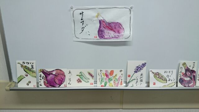 火曜日は、阿倍野市民学習センターの絵てがみ教室でした。実家の父が畑で作って送ってくれた赤いエンドウ豆と紫タマネギを持ってきました。どれも、とっても美味しそうに描いて頂き、嬉しいです。父が野菜を送ってくれる事は、元気でいてくれている証拠。何より、その事が嬉しいですね。 【絵てがみ教室のお知らせ】※どの教室に来られてもOKです。※どの教室も時間は、10:00~11:30(*時間変更の場合もあります)※参加費、1,000円/1回毎※道具レンタル、500円/回(筆、顔彩、パレット)要予約※いつでも、お試し体験(1,000円)できます。【各教室の日程】ウィルサロン(月or水or金)……5/11(月)、20(水)楽しみカルチャースクール(第3火)……5/19、6/16あべの学習センター(第2,4火)……5/12、26、6/9、13弁天町学習センター(第2,4水)……5/13、27、6/10、24弁天町学習センター(不定期 土)……5/16、30、6/13、27