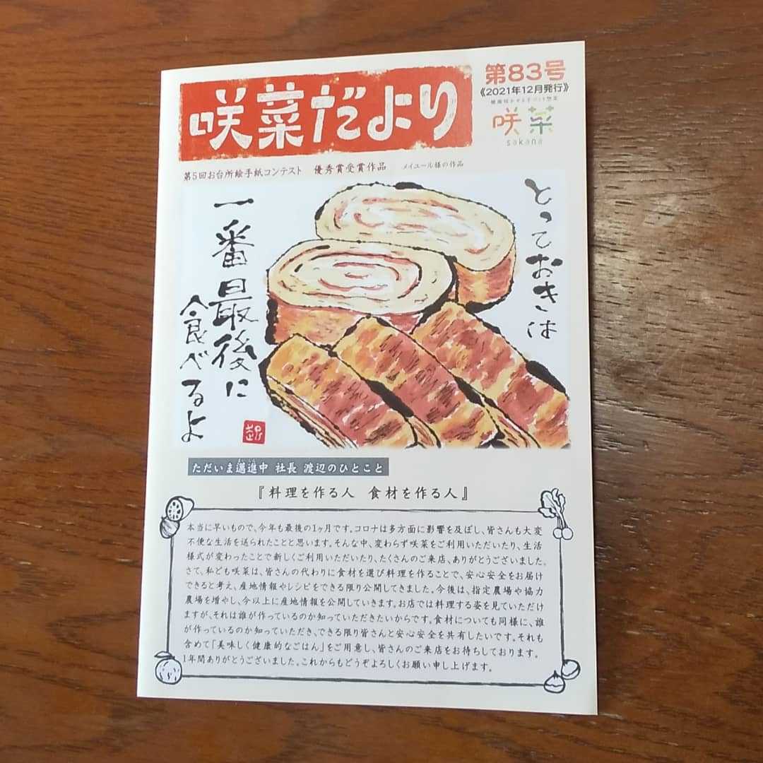 お惣菜屋さんの、毎月、月始めに配られているチラシ冊子の表紙になりました。 なんだか、恥ずかしいけど、嬉しいですね。 先々月くらいには、絵てがみ教室ウィルサロンに参加くださっているGさんの赤いパプリカの絵てがみ作品が、チラシ冊子の表紙になっていましたね。 咲菜 第5回絵手紙コンテスト http://okayamafs.com/chisou/odaidokoro_etegami.html