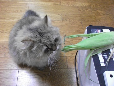 今週末は、あいにくのお天気でしたね!?さて、今年もめめの、とうもろこしの葉っぱガシガシが見れるようになりました!?食べてもいいですか~?パクッガシガシ・・・ふむ、美味しい!?さて、とうもろこしの葉っぱをそこそこ食べた後のめめたんは・・・だらしなくなってしまいました(笑)めめ:ごちそうさまでした!?私:お粗末さまでした!?