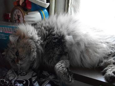 まだまだ、暑い日が続きますね~!?先週、3日かけてめめの散髪をしました。刈られた直後のめめ、ふて寝しました・・・グルーミングもしてます。それから、物陰にも隠れてしまいました!?刈ったついでに、シャンプーもして、さっぱりしましたよ~。まだまだ暑い日が続きますが、皆さま、熱中症にはご注意下さい。